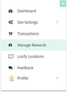 - In your Locify account menu, navigate to the Manage Rewards page.